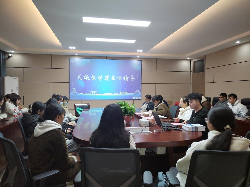 少数民族同学首先作了自我介绍。李东辉介绍了本科生综合测评、评奖评优过程中的评价细则,引导民族生重视学业成绩,鼓励同学们积极参加社会实践、专业竞赛,提升自身综合素质。然后,李东辉详细说明了家庭困难学生的资助政策与申请方式,着重介绍了违纪处分规定及重要管理规定,强调同学们要注意日常行为规范,遵守校园管理制度,维护学校教学秩序。