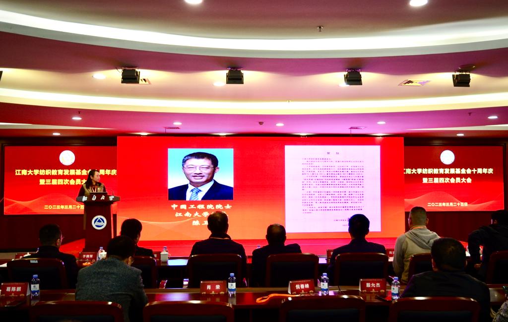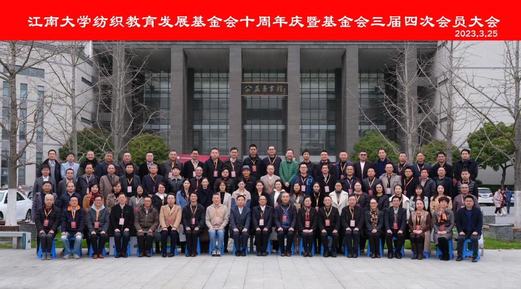 3月25日,江南大学纺织教育发展基金会十周年庆暨三届四次会员大会在图书馆五楼报告厅召开。来自全国各地300余名会员、校友汇聚一堂,共商育才大计。
