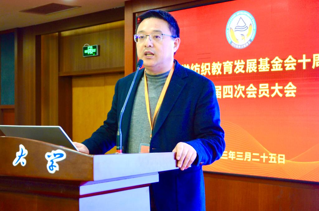 江南大学纺织教育发展基金会理事长高卫东教授作基金会工作报告