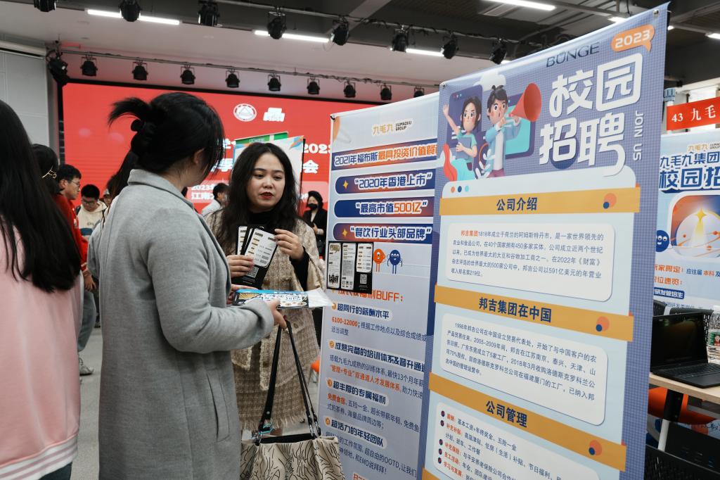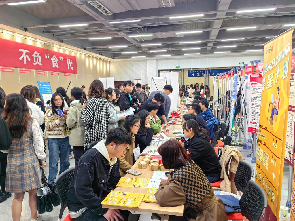 4月7日下午,江南大学食品学院2023年春季专场招聘会在北区大学生活动中心成功举办。招聘会吸引了太古可口可乐(中国)有限公司、雅培贸易(上海)有限公司、嘉吉投资(中国)有限公司等70余家世界500强、上市公司和知名企业参加,共计提供1500个就业岗位。大批学子前往招聘会求职应聘。