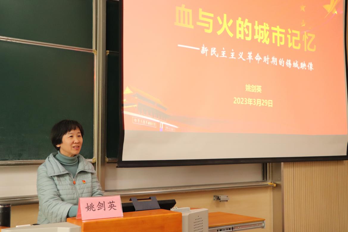 随后的课程中,人文学院党委书记姚剑英以《血与火的城市记忆——新民主主义革命时期的锡城映像》为主题,讲述了无锡党组织的发展史和革命先辈们在四个重要时期“抛头颅,洒热血”的英勇事迹。马克思主义学院副教授王平一以《不忘初心跟党走》为主题,讲述了为什么要开展党史学习,强调全党开展党史学习教育的必要性。商学院党委书记刘长青以《中国共产党精神谱系》为主题,从中国共产党精神的重要性出发,讲述了中国共产党精神的源头根脉、内涵、主体和谱系构架。理学院党委书记王珏以《守纪律讲规矩做合格党员》为主题,围绕党的纪律建设发展的四个重要时期,讲述了党员干部要守纪律、讲规矩的重要性。