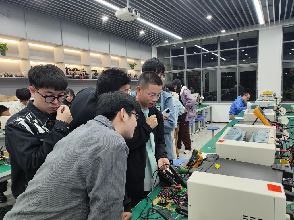 本届大赛共吸引了来自物联网工程学院、机械工程学院、人工智能与计算机学院、理学院的等150余名同学报名,依托电子设计俱乐部软硬件平台,学院采取科创辅导员组织管理、专业教师理论课程讲授、实习实践训练营、导师一对一指导、实验教师跟踪辅导等一系列措施,“以赛代训”培育竞赛团队。经过报名遴选、三期培训营、初赛等近5个月的激烈角逐,最终共有10支队伍进入决赛。决赛期间,参赛团队在大创基地的封闭实验室内开展为期一周的包括方案设计、理论推导、仿真验证、硬件电路搭建、软件设计编程、系统调试等电子系统设计与制作。决赛邀请了朱凯元、冯伟、张伟、肖永松等专业教师担任测评评委,最终评选出一等奖4项、二等奖6项。获奖团队将通过学院接下来组织的拔高训练班,继续备赛全国大学生电子设计竞赛、全国大学生电子设计模拟系统邀请赛等高层次赛事。