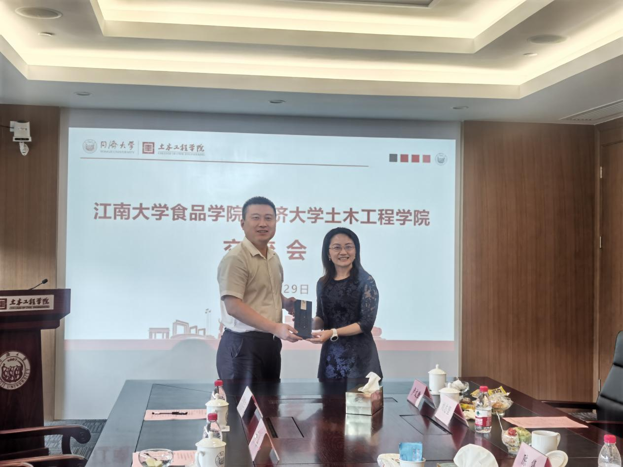 座谈会上,同济大学土木工程学院院长周颖、党委副书记徐培芳、陈隽、刘志坚,副院长阮欣、宋晓滨、刘芳出席并作交流。周颖院长代表同济大学土木工程学院对江南大学食品学院一行的到来表示热烈欢迎。她介绍了土木工程学院的发展历史和建设成就,阐释了专业系所设置、人才培养模式、国家科研平台、国际合作交流、重大科研产出等情况。她指出,新时代学科发展必须注重前沿和交叉研究,应向低碳、韧性、智能、人文发展,并不断向深海、深地、深空方向迈进。随后,双方班子成员开展了学习贯彻习近平新时代中国特色社会主义思想主题教育联学活动,就“双一流”建设、工程教育认证、高水平师资队伍建设、重大科研组织、党建思政与学生工作等方面进行了深入研讨。座谈最后,范大明院长与周颖院长互赠礼物,两院相约开展常态化沟通交流与经验互鉴。