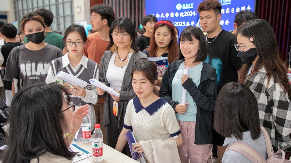 为全面落实就业优先政策,做好2024届毕业生秋招衔接工作,5月26日下午,商学院2024届毕业生暑期实习暨2024届毕业生招聘会在商学院一楼大厅举办。
