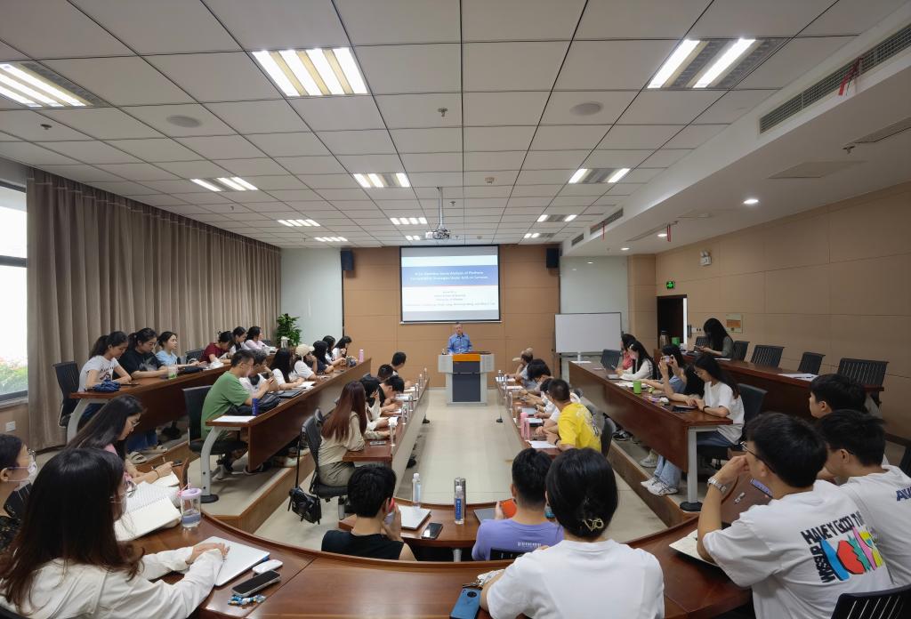 6月13日上午,“商学大讲堂”系列要闻第214讲在商学院116报告厅举行。加拿大温莎大学Odette商学院李武教授受邀作题为“A Co-Opetitive Game Analysis of Platform Compatibility Strategies Under Add-on Services”的要闻。商学院管工系教师和管工、物流、工业工程与管理研究生和系统科学与管理博士生60余人参加了本次讲座。