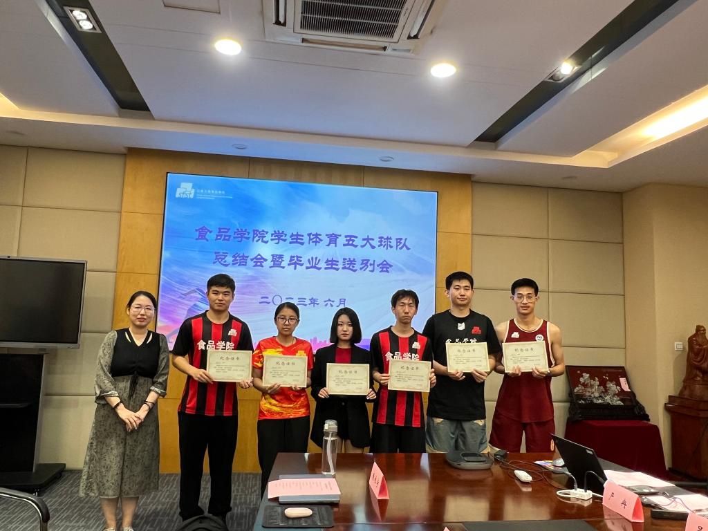 6月19日下午,食品学院学生五大球队春季学期总结会暨毕业生球员欢送会在D910会议室举行。党委副书记、副院长李雷,分团委副书记李琳,体育专项辅导员李金杰,五大球队队长、经理人、毕业生球员及学生会文体部负责人出席活动。