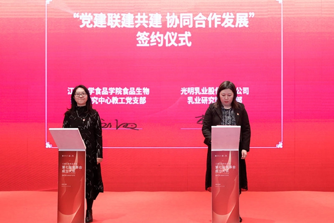 大会现场,“守初心 担使命 迎百年 创一流”江南大学食品学院迎接建党一百周年活动的发布和启动仪式同时举行,江南大学食品学院五个党支部与五个企事业单位的党支部进行了党建联建共建签约。
