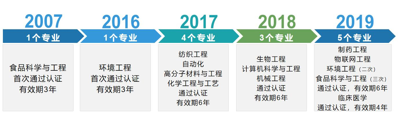近日,中国工程教育专业认证协会公布了2021年受理工程教育专业认证申请的名单,我校食品质量与安全、微电子科学与工程、包装工程、过程装备与控制和数字媒体技术等5个专业的申请获批受理。另外,根据长三角新文科教育专业认证联盟通知,我校产品设计、汉语言文学、工商管理等3个专业获批受理2021年新文科教育认证申请。