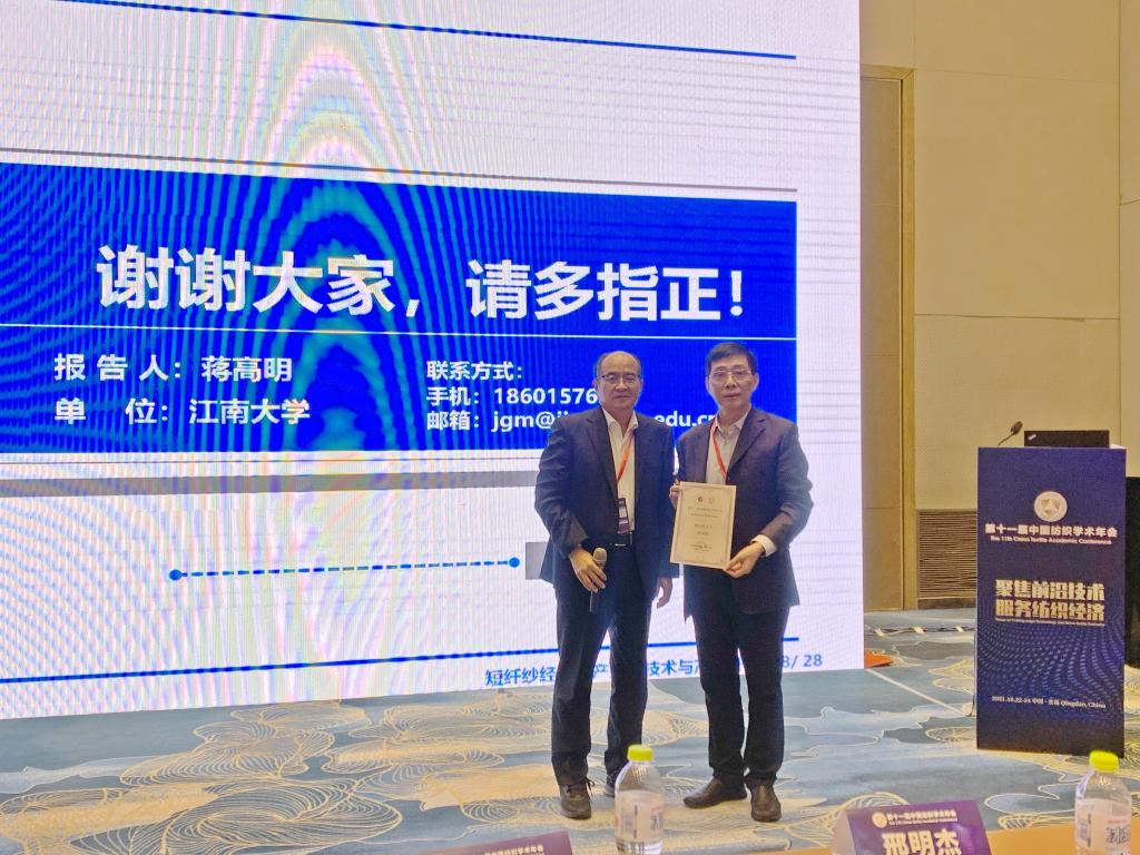 10月22-24日,第十一届中国纺织学术年会在青岛召开。江南大学纺织科学与工程学院承办“现代纺织技术论坛”分会场,分论坛由高卫东教授和潘如如教授联合主持。