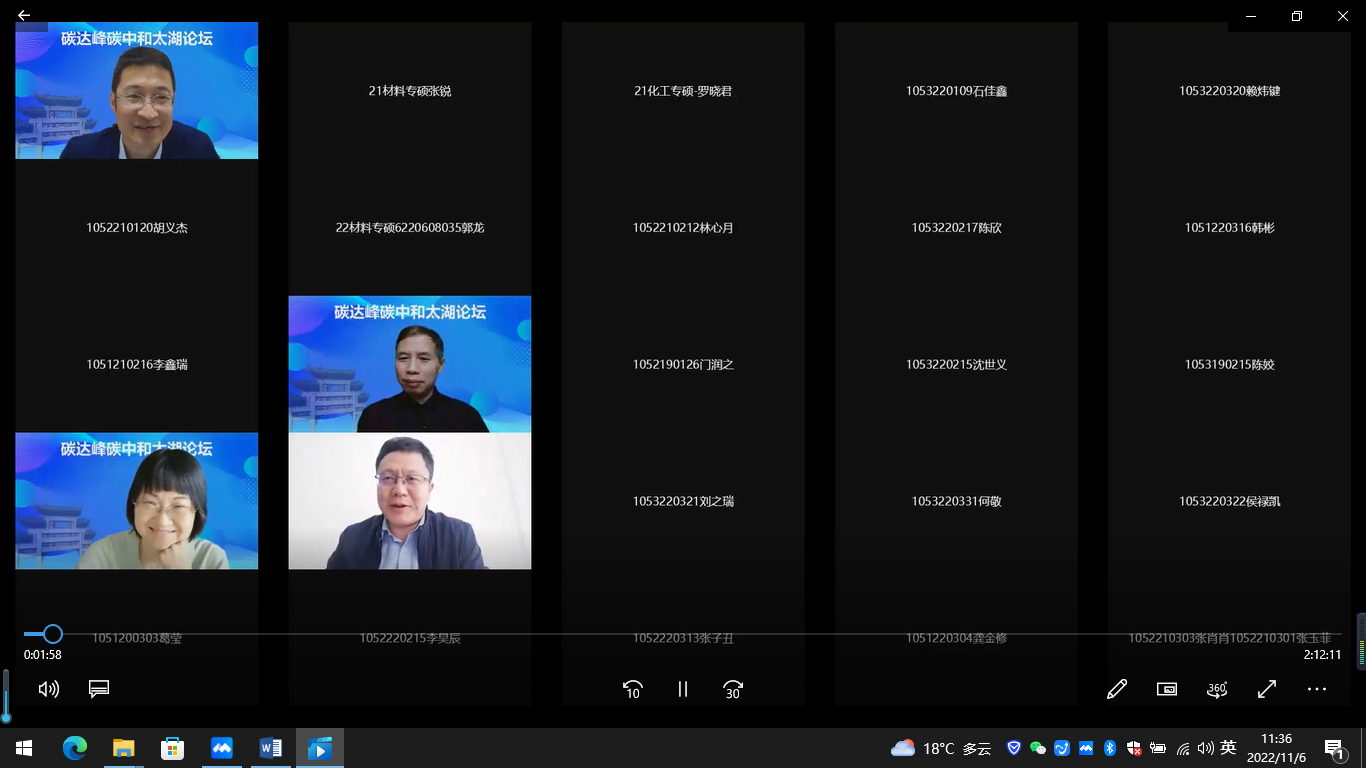 11月6日,由江南大学、中国感光学会光催化专业委员会等联合设立的“碳达峰碳中和太湖论坛”正式启动,举行了开讲仪式和首期报告会。中国科学院院士、中国科学技术大学谢毅教授,中国感光学会副理事长、光催化专业委员会主任、清华大学朱永法教授和北京化工大学孙晓明教授应邀出席,开讲仪式和学术报告会分别由化学与材料工程学院院长东为富教授,朱永法教授主持,校长助理张光生教授代表学校致辞并宣布论坛开讲。首期活动采用线上线下结合的方式,在蠡湖校区和宜兴研究生院分别设立集中会场,化学与材料工程学院副院长董玉明教授和相关师生共计约500人参加。