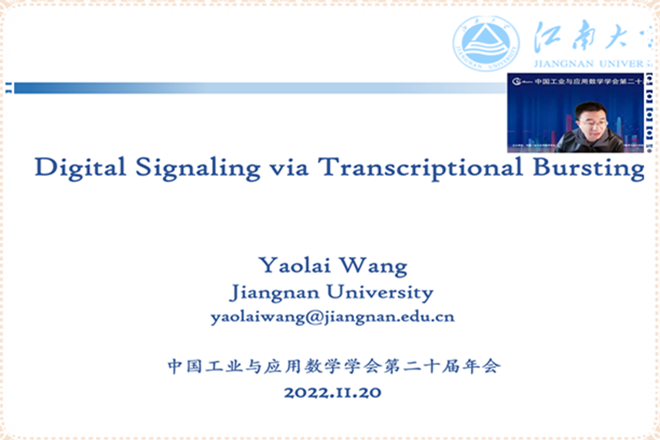 11月20日上午,我校数学学科硕士生导师王耀来副教授应邀在“数学与生命科学的交叉”主题讨论会上作了题为“Digital signaling via transcriptional bursting”的报告。这也是我校数学学科教师继去年首次在中国数学会学术年会上亮相以来,又首次在中国工业与应用数学学会学术年会上亮相,进一步扩大了我校数学学科在全国的影响力。