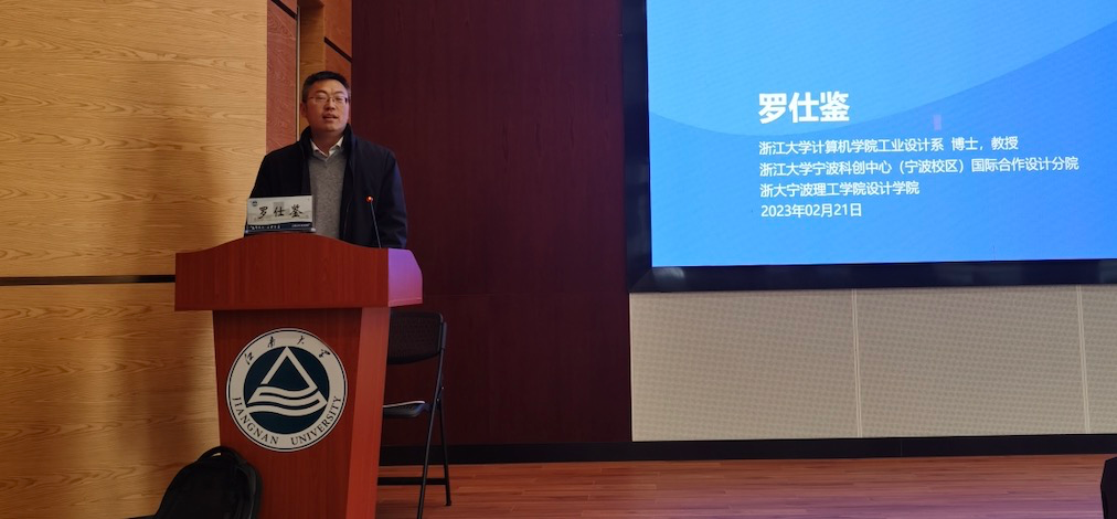 2月21日下午,受江南大学设计学院邀请,浙江大学罗仕鉴教授在东氿校区清源楼A101报告厅以《设计建构论》为题进行了专题讲座。设计学院院长魏洁教授、陆一晨老师、张楠老师以及东氿校区的全体设计学院研究生参加了讲座。讲座由设计学院博士生导师胡伟峰教授主持。