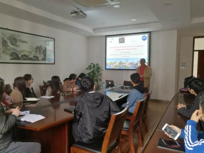2019年3月27日上午9点,法国斯特拉斯堡大学Pierre Braunstein教授应邀来我校访问,并在化工楼A308报告厅作了题为“Hybrid Chelates in Ni and Cr Complexes and Catalytic Ethylene Oligomerization”的精彩报告。化工学院张金方老师主持了本次报告会,并对Pierre Braunstein教授的来访致以热烈欢迎,众多师生参加了此次报告会。Pierre Braunstein教授循序渐进地开展了他的讲座内容并热忱地欢迎感兴趣的研究生进行咨询。报告会现场气氛十分活跃,师生就低聚合度分子的结构、设计、用途等方面的问题和Pierre Braunstein教授进行了热烈讨论与交流。