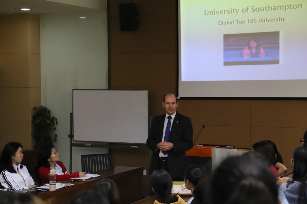 下午,Martin Broad教授为商学院对出国留学有兴趣的本科学生做讲座,与学生们热情互动,并表达了希望通过双方商学院的合作,让更多的同学可以有机会前往南安普顿商学院进行深造。