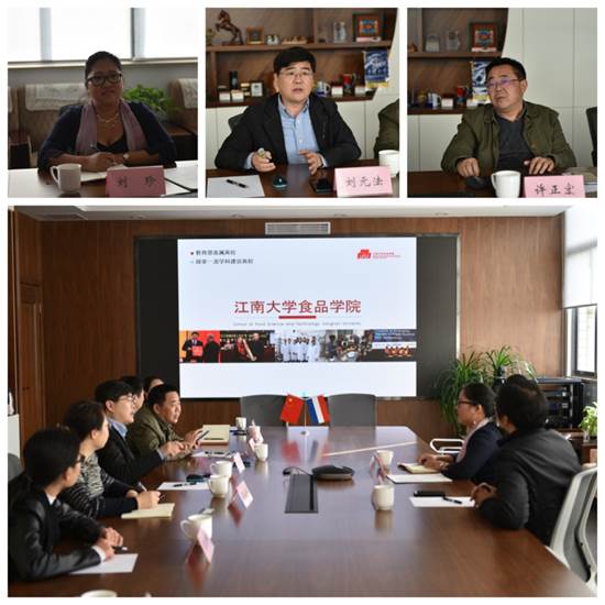 11月9日,瓦赫宁根大学及研究中心刘珍博士受邀来访我校,上午在食品学院D925会议室,食品学院院长刘元法、生物工程学院院长许正宏、食品学院副院长王周平、谢云飞、国际交流合作处副处长蔡建英、尹健等相关人员接待了来访客人,并参加交流。