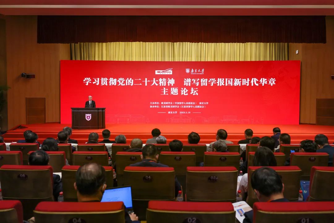 为深入学习贯彻落实党的二十大精神和习近平总书记给南京大学留学归国青年学者重要回信精神,2月19日,由欧美同学会(中国留学人员联谊会)等主办的“学习贯彻党的二十大精神 谱写留学报国新时代华章”主题论坛在南京大学隆重举行。全国人大常委会副委员长、欧美同学会会长、中国科学院院士丁仲礼,中央统战部副部长、国务院侨务办公室主任陈旭,教育部党组成员、副部长王嘉毅,江苏省委常委、统战部部长惠建林等领导出席论坛并致辞。