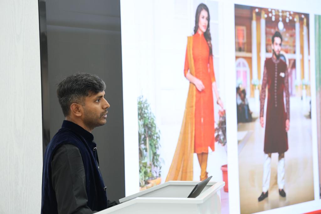 国际学生也盛装打扮,热情地向大家介绍了自己本国的传统服饰。来自巴基斯坦的顾长明介绍了巴基斯坦不同花纹的各类传统服饰,和经过改良变得更加时尚的民族服饰,还讲解了帽子的戴法及其蕴含的含义。来自也门的安静风介绍了他们国家不同部落的特色服装,以及也门腰刀文化。来自缅甸的林金花介绍了缅甸近几十年来女性服饰的演变历史。来自佛得角的阿琳介绍了佛得角的国旗礼服和传统舞蹈服装。另外,来自卢旺达的李娜、孟加拉国的苏佳诚、阿提娅,印度尼西亚的叶爱玲、哈萨克斯坦的爱达、尼日利亚的何川也一一上台向大家展示本国传统服饰。