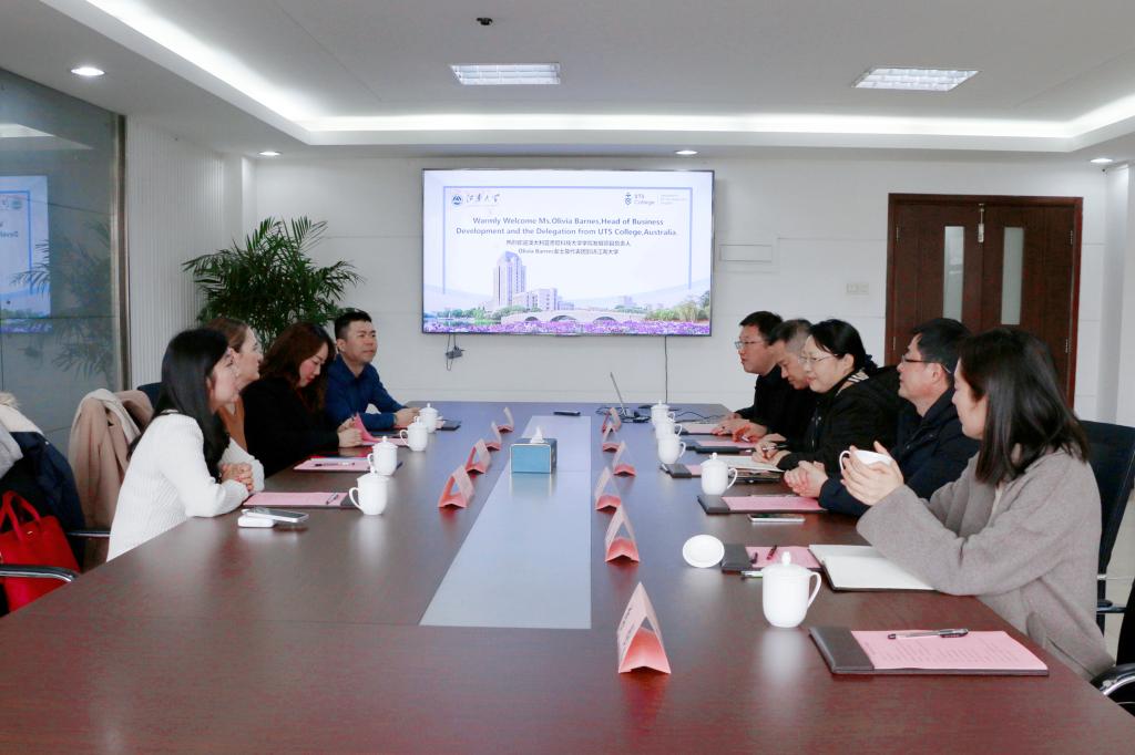 3月6日下午,悉尼科技大学(UTS)学院项目发展负责人Olivia Barnes女士带领UTS代表团一行四人访问江南大学。我校国际交流合作处副处长蔡建英、秦洁,继续教育学院党总支书记张文、院长王育红、副院长惠恭健在行政楼B304会见了来宾,并就国际教育培训合作进行了深入的工作交流。