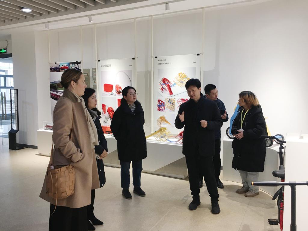 之后,UTS代表团一行前往我校设计学院参观设计馆。设计学院曹鸣教授就我校设计学科的发展历史、学科特色、教学成果等向来宾作了详细介绍。UTS来宾对我校设计学科的办学实力、发展成就表示由衷地敬佩。