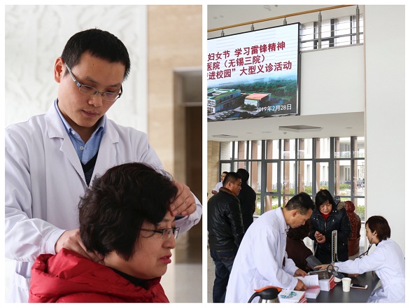 为庆祝“三八”妇女节、弘扬雷锋精神,促进女性健康,把关爱送给全校师生,在江南大学校工会和江南大学无锡医学院党委领导的支持和帮助下,2019年2月28日,江南大学无锡医学院分工会联合江南大学附属医院(无锡三院)开展“阳光天使进校园”大型义诊活动,以专业医疗知识服务全校师生,以专业精神引领校园健康。