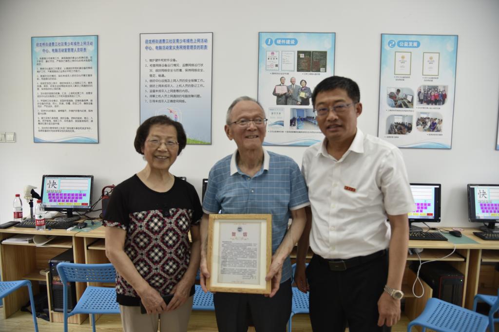 在江苏省老科协科普教育基地——姚鸿滨公益电子阅览室,陈卫听取了姚鸿滨关于目前服务社区居民、助力社区党建工作的情况,以及发挥自己所长不断为社会、为学校、为老同志服务的思考与实践。陈卫对姚鸿滨坚持离岗不离责、退休不褪色,主动请缨加入老科协,十几年如一日投入到社会公益服务、教学科研中去,并为援疆支教付出的巨大努力给予高度赞赏,充分肯定这些突出成绩都是一步步干出来的,真正体现了“老有所为”,仍可大有作为。