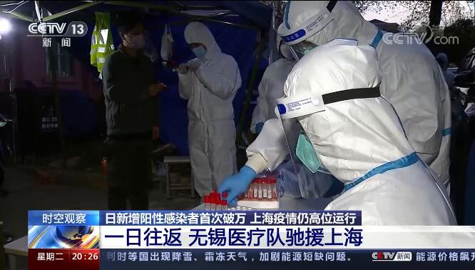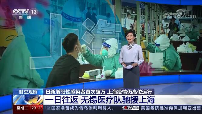 【中央电视台4月5日】4月5日晚,在中央电视台新闻频道播出的《东方时空》栏目报道了无锡医疗队驰援上海的消息。报道中提到,医疗队一整天做了15万人次的核酸采样之后,连夜坐车赶回无锡,将经历7+7的隔离时间,并根据上海疫情需要随时待命。以下为视频截图: