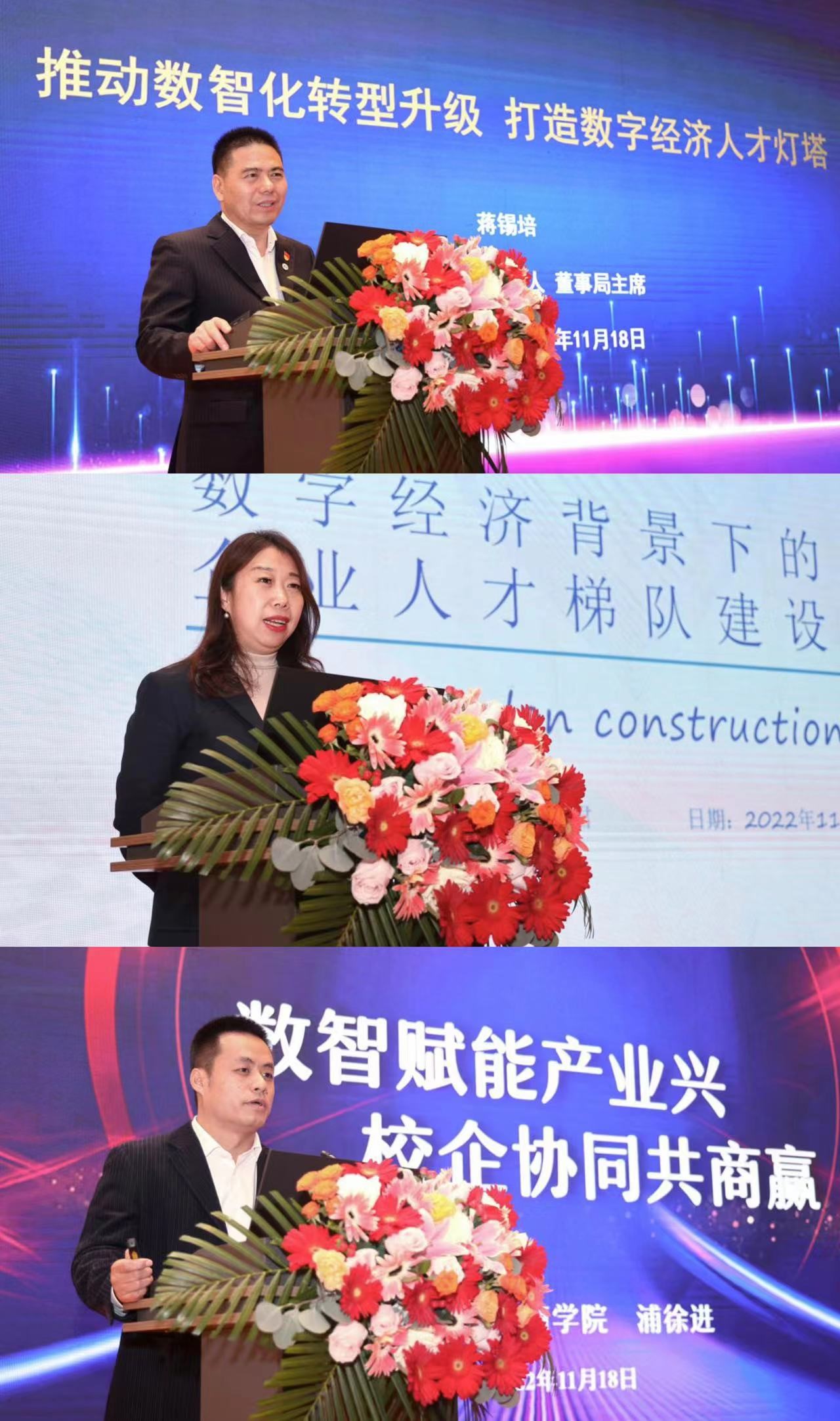 蒋锡培、张君君、浦徐进围绕“数字经济下的企业人才管理战略”主题作主旨演讲