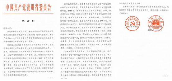 贵州省委省政府感谢信