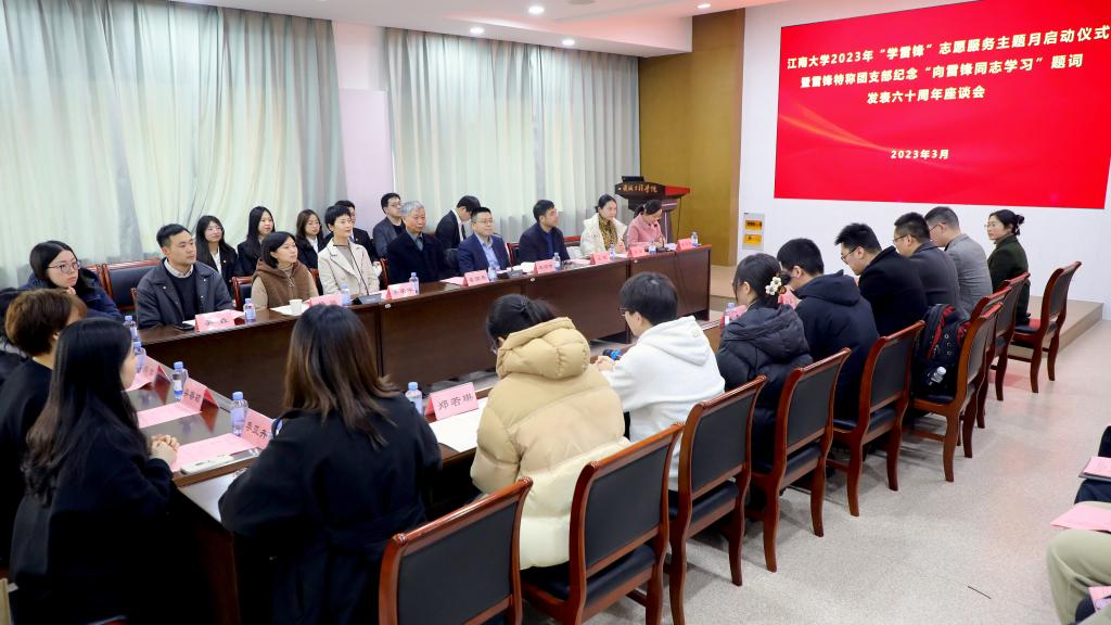 为深入学习宣传贯彻党的二十大精神,贯彻落实习近平总书记近日对深入开展学雷锋活动作出的重要指示精神,深入开展学雷锋志愿服务活动,3月1日,由校团委主办,机械工程学院承办的江南大学2023年“学雷锋”志愿服务主题月启动仪式暨雷锋特称团支部纪念“向雷锋同志学习”题词发表六十周年座谈会在机械工程学院C302报告厅举办。校关工委常务副主任娄国栋,校团委书记魏珍吉,党委宣传部副部长梁建,学生工作部副部长兼研究生工作部部长李荣华,马克思主义学院副教授孙越,雷锋特称团支部代表,青年志愿者服务项目团队代表以及教师代表参加会议。会议由校团委副书记单云婷主持。
