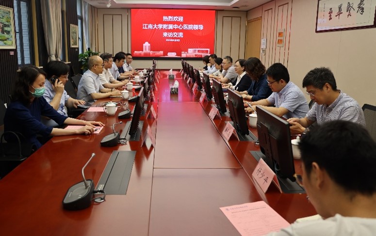 6月6日上午,江南大学附属中心医院党委书记鲁晓杰、院长冯宁翰、副院长夏加增、科技处、教育处和科研平台等一行领导来无锡医学院走访交流,对接各条线工作。无锡医学院党委书记向琪、党委副书记兼副院长包羽,副院长奚晓岚、孙宁、程洋、柴高尚,院长助理潘礼龙以及学院办公室、组织人事、科研、教学等条线管理人员参加座谈交流。会议由向琪主持。