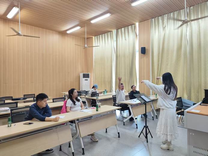 大赛前夕,2022级所有学生以饱满的热情投入备赛中,琴房、舞蹈教室、多媒体教室等处处涌动着精益求精的学术氛围,展现新时代师范生“厚积薄发、追求卓越”的精神风貌。比赛中,同学们以“三尺讲台育桃李,一方舞台展风华”的昂扬姿态,展现了一场艺术性、教育性与创新性于一体的高水准赛事。在合唱指挥组比赛中,同学们对声部平衡的精准把控,生动展现出作品的艺术魅力和情感内涵;在自弹自唱组比赛中,同学们将即兴伴奏与声乐表现有机融合,展现出扎实的专业功底;在微课组比赛中,同学们灵活运用多媒体技术,紧扣教学重难点,将文本知识转化为生动直观的课堂呈现,体现出“短、精、趣”的微课特色;另外在分选组中,同学们根据自身特长选择不同组别来展示专业技能,比赛精彩纷呈。