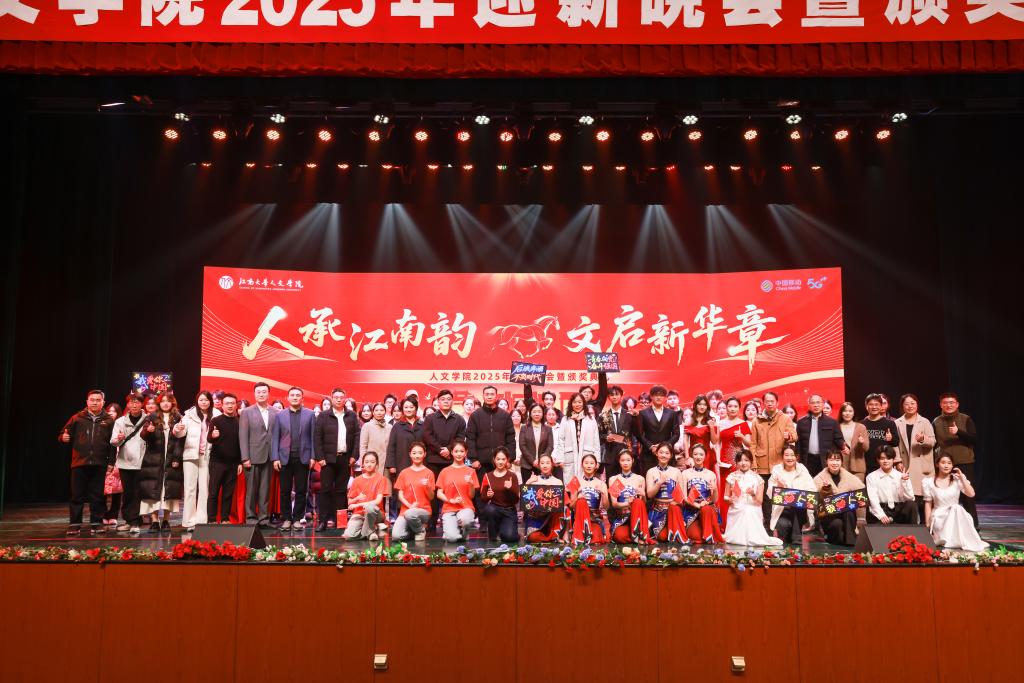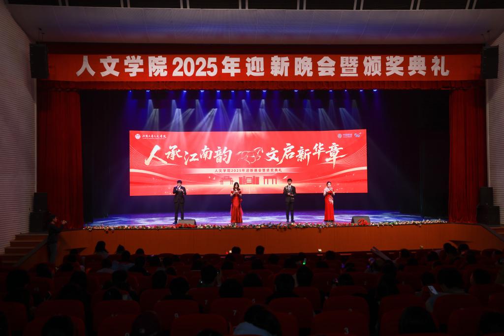 12月26日晚,人文学院“人承江南韵,文启新华章”2025年迎新晚会暨颁奖典礼在文浩馆举行。学院党委书记王晖、院长伍红林等领导班子成员,校团委副书记吴垚,各系部教师、合作企业代表、校友及2025级全体新生齐聚一堂,共同见证这场承载传承与启新的盛会。