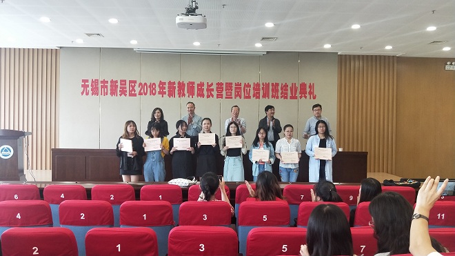 5月19日上午,无锡市新吴区2018年新教师成长营暨岗前培训班汇报总结及结业仪式在江南大学图书馆305举行。人文学院、田家炳教育科学学院党委书记沈贵鹏、副院长田良臣、惠恭健以及新吴区教师发展中心主任顾万春、新吴区教师发展中心培训部主任马兰以及2018年入职的新教师380多人参加了本次活动。