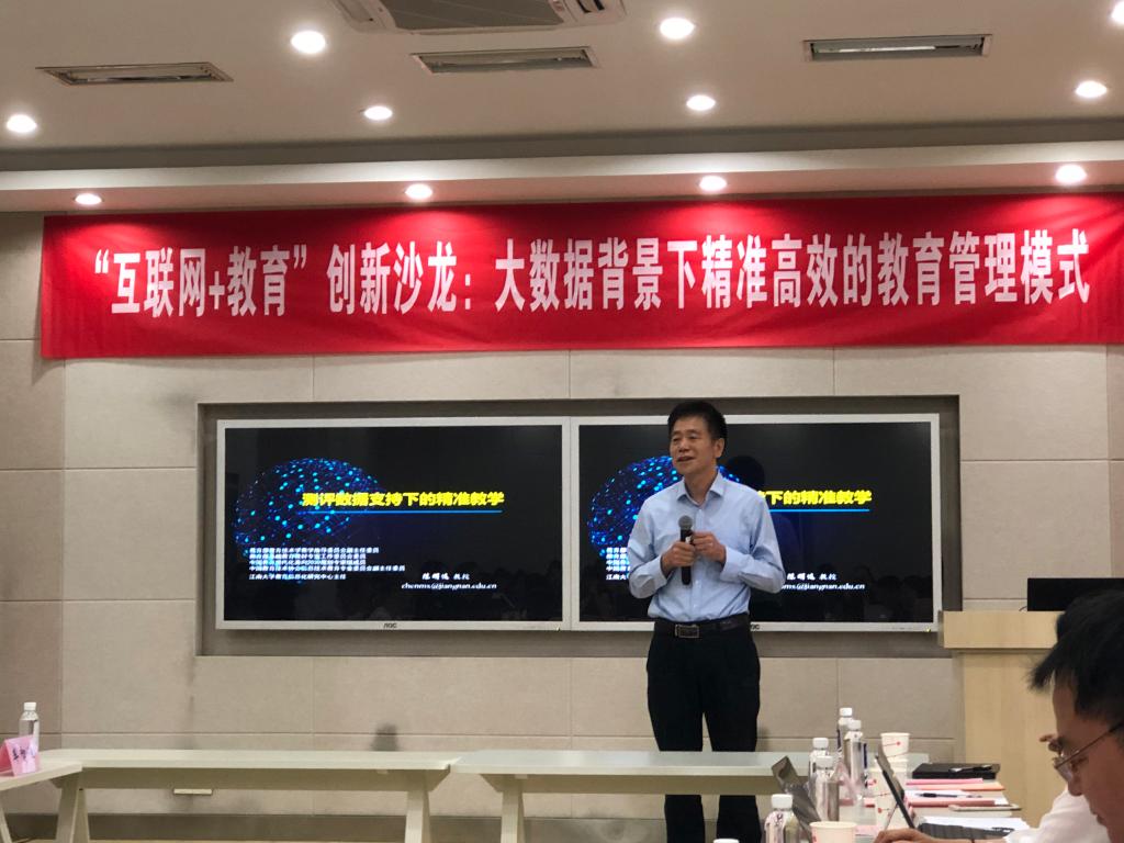 接下来,江南大学教育信息化研究中心主任陈明选教授做了《测评数据支持下的精准教学》的学术报告。在报告中,陈教授指出运用数据优化学与教,提高绩效的系统解决方案。随后,北京师范大学远程教育研究中心主任郑勤华副教授在《互联网教育中的精准教育管理与服务》报告中提出将非结构化数据转变为计算机可处理的数据,并为精准服务提供能力模型。最后,两位企业CEO进行了专题报告:翼欧教育CEO宋军波在《Classin的教学实践与产品理念》报告中分享了Classin的产品设计理念,以及东方优播、武汉西大街小学的产品应用实例。试达教育CEO李文建在《智慧教育:与大数据同行》报告中分享了多维成绩报告单等大数据导向的教学实践。