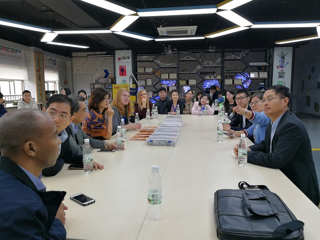 在无锡市江南中学,代表团一行人现场观摩江南中学特色音乐课程《我是中国人》与体育课程《中华武术》,充分感受到中国基础教育的特色,近距离领略了源于中国文化的课程教育以及反哺基础教育的鲜活实践经验。此后,双方展开中美基础教育课程与交流讨论会,对在基础教育方面存在的共同问题进行深入对话与交流,代表们积极深度分享各自的经验,期望在基础教育领域进一步推进合作与发展。在无锡市第一中学,代表团一行人现场观摩了彰显现代化技术的特色课堂“创客空间”,深刻体验了“互联网+时代”背景下人工智能对基础教育的深刻影响,感受到了中国现代化背景下的中学课堂魅力。在参观国学文化馆的同时围绕教师专业发展、学生培养模式等问题展开深入探讨,提出中美双方应该相互借鉴,彼此倾听两国基础教育的声音,取得丰硕成果。