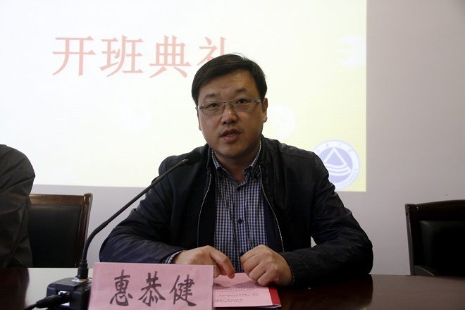 开班仪式上,惠恭健代表江南大学人文学院(田家炳教育科学学院)致欢迎词。他向学员们介绍了江南大学的办学特色、人文学院和校长教师培训中心的发展历程,对各位学员来江南大学参加培训表示热烈的欢迎,并希望各位学员通过此次培训提升自我的业务水平和工作能力,学有所思、学有所获。
