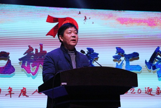 在主持人简短的介绍后,田良臣为晚会致辞。他回顾了过去一年人文学院的各项工作和活动,也对学院师生收获的成果表示祝贺。他展望未来,希望在新的一年里,人文学院不忘初心、合心攻坚,再创佳绩。