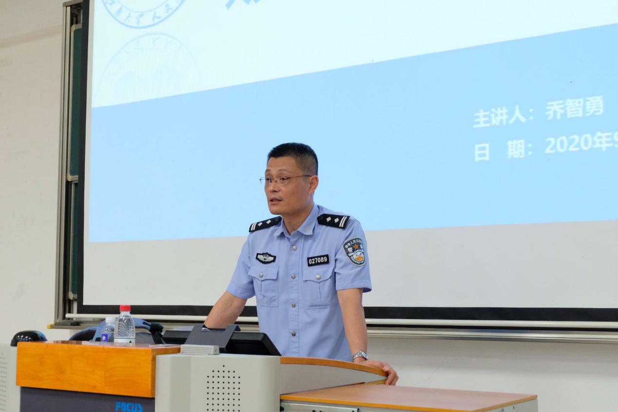 讲座伊始,乔智勇警官从自身的工作经历给同学们讲述了“什么是网络诈骗”“网络诈骗的常见形式”“如何识别防范网络诈骗”等知识内容,让同学们了解了网络诈骗的相关知识。他指出,由于大学生缺乏财务管理意识,轻信来历不明的信息,极易成为不法分子的诈骗目标。