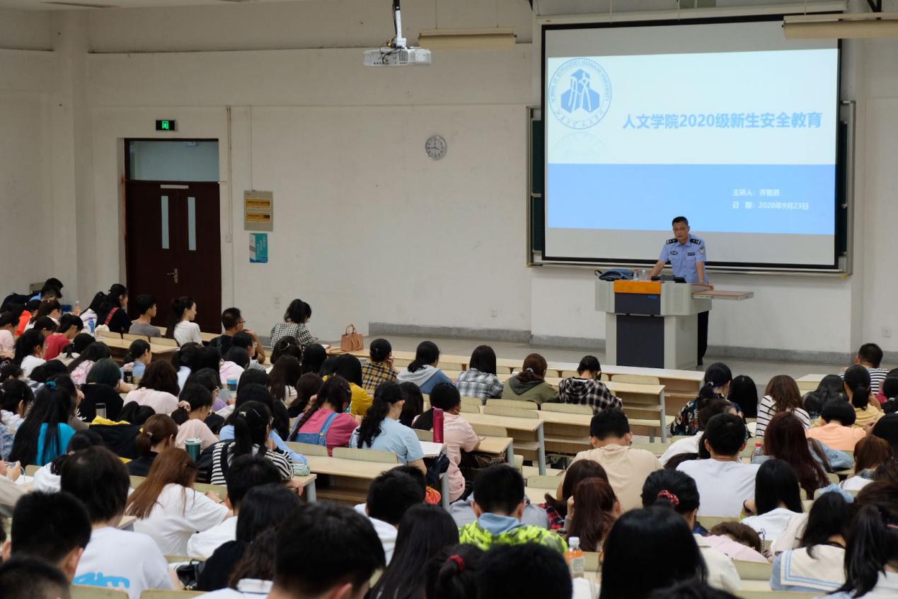 为切实增强学生的安全防范意识和避险能力,保障学生的人身和财产安全,9月23日晚上,人文学院在学校第二教学楼1A217教室举行新生安全教育。本次新生安全教育特别邀请到滨湖区公安分局内保大队副大队长乔智勇警官为大家精彩开讲,活动由学院2020级新生辅导员张雅静老师主持。