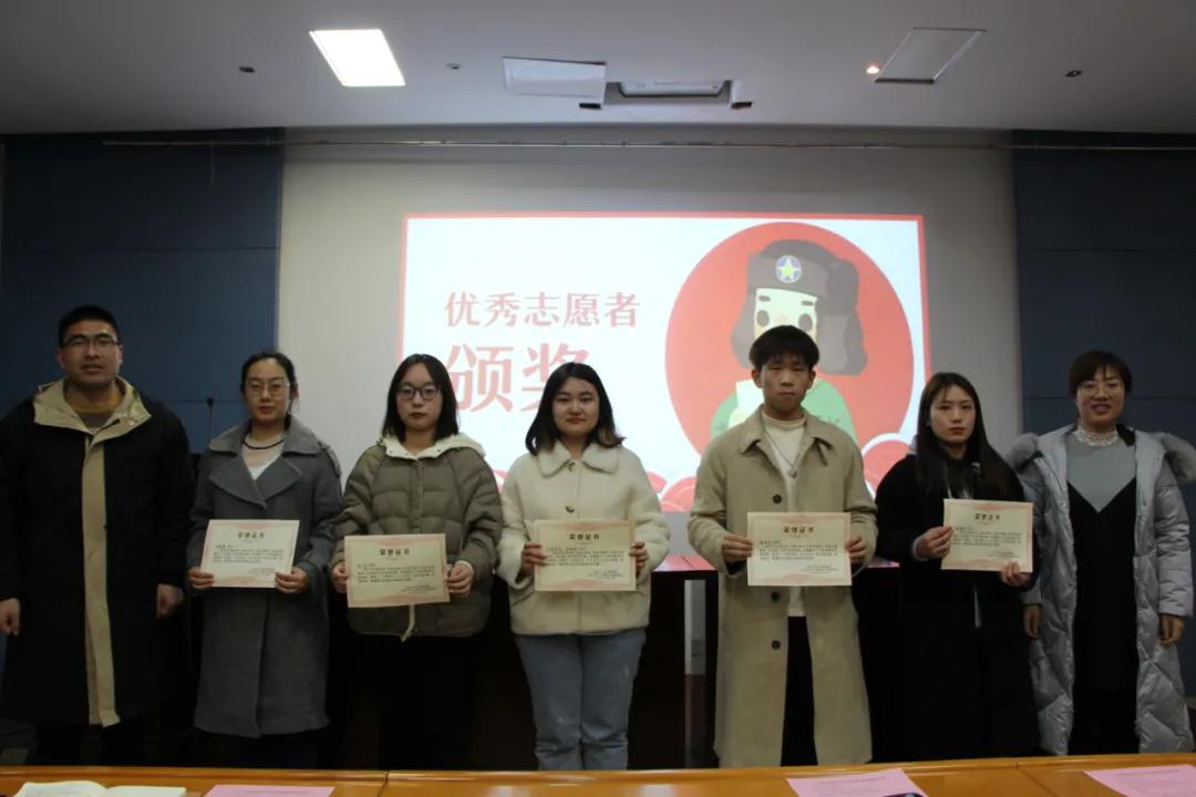 随后,赵丽敏、赵将分别为优秀志愿者颁发证书,吕姝慧、高丽、古丽百合•牙胡甫、李威龙、蔡章丽五位同学荣获人文学院优秀志愿者称号。几位志愿者曾在无锡马拉松、无锡运动网组织的乐跑马山天使跑、万人徒步等活动中担任志愿者,其中李威龙、吕姝慧、蔡章丽三位优秀志愿者曾赴乡村小学进行支教活动。他们积极投身志愿服务工作,奉献自己的热情与善意,这几位优秀志愿者的事例也打动了在场每一位同学,对继承弘扬志愿服务精神,明晰志愿服务活动方向有积极促进作用。