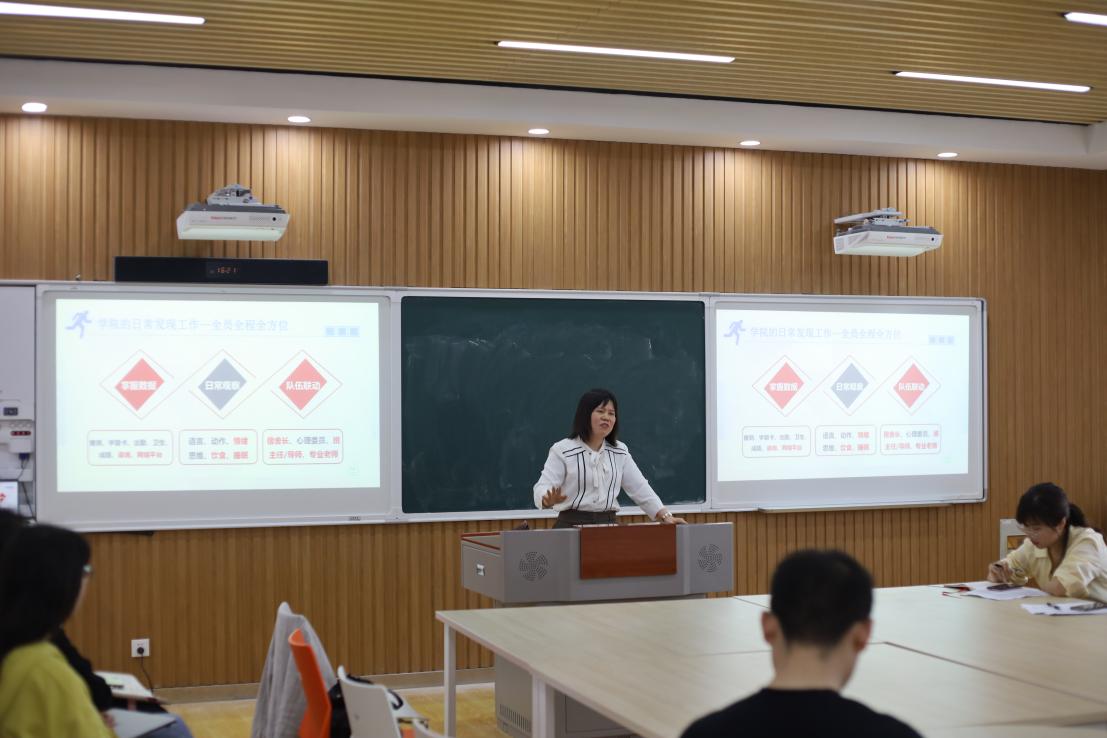 会议伊始,校心理健康中心陈华平老师就心理危机识别与干预做专题培训,针对当前大学生所面临的心理问题及应对措施进行了详细地培训和介绍,她表示,当前大学生出现心理问题的现象增多,班主任应起到积极的引导作用,加强对学生心理健康、生命教育的重视程度,让学生正确看待压力与挫折,理解生命的珍贵。紧接着,校“优秀班主任”获得者、人文学院小教1701班屈博老师进行发言。他向各年级辅导员对班主任工作的支持与无私奉献表示感谢,并阐述了班主任身上担负的责任,与在座班主任分享班级管理经验。他表示,班主任应明确自身定位,承担职业所赋予的责任,才能真正走进学生的心中,做好学成的成长导师和知心朋友。而后,李萍对下一阶段班主任工作进行提示和安排。她从班主任对学生的心理引导、安全稳定及近期工作的相关安排做了重点强调。最后,人文学院心语心悦工作室张慧老师对班主任开展心理班会的相关事宜进行讲解。她希望在班主任老师的带领下,同学们能够释放压力,敞开心扉,班主任也可以通过此次班会把握学生心理状况,深入了解班级同学对生命价值的探索,从而营造良好的班级氛围。