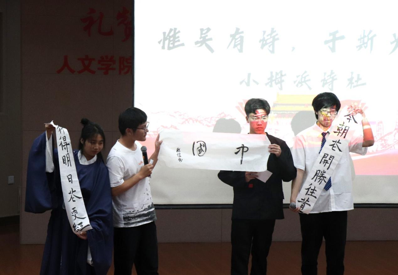 社团魅力展示环节,小姆浜诗社用诗歌传递坚定热爱祖国的信念,用诗歌表达对党忠贞不渝的决心。从南湖红船到解放全中国再到西部大开发和北京奥运会,鸢瞳摄影协会用一张张照片带观众重温那些党的历史时刻。边界文学社带来了原创诗朗诵《红色》,在深情朗诵中,雄壮的呐喊仿佛回响在耳边,爱国的热情在心中不断激荡。国学社同学带来的现代京剧《好闺女》的表演让人眼前一亮,还为现场观众展示了中国传统礼仪“揖礼”,帮助大家更深刻的了解到中华传统礼仪的趣味和魅力。种子话剧团带来的话剧《红色》充分体现出了其“十年磨剑精益求精”的创作信念。