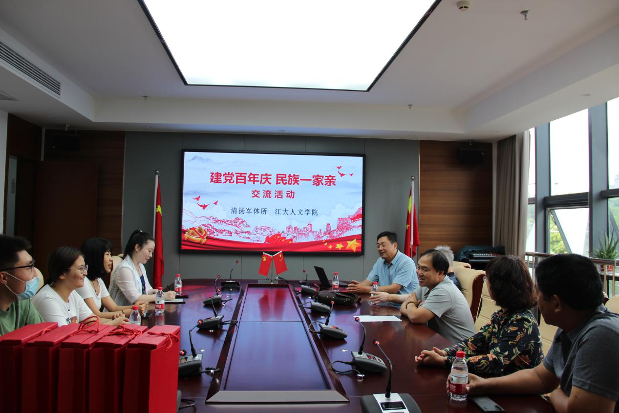 6月8日,人文学院2018级新疆少数民族学生代表前往清扬干休所新址参观并举行交流座谈。江南大学人文学院辅导员刘昕旎及学生一行4人,清扬干休所领导王晓磊、老干部朱长兴、朱永亮、王小进等6人出席会议。会议由清扬干休所副所长蔡峥主持。
