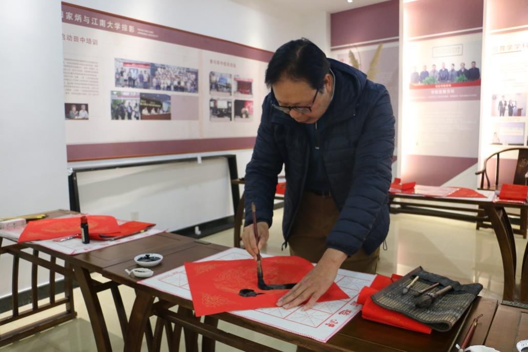 值此新岁来临之际,为共同迎接新春佳节,弘扬传统文化,12月30日下午,人文学院在田家炳先生事迹陈列厅举办“送春联写福字 金洒红宣迎新春”新年特别活动。无锡市书法家协会会员、无锡市私营个体经济协会理事任理培先生,校党委宣传部胡奕老师以及人文学院十余名“书法小先生”参与了此次活动,此次活动由中文本科生第一党支部承办。