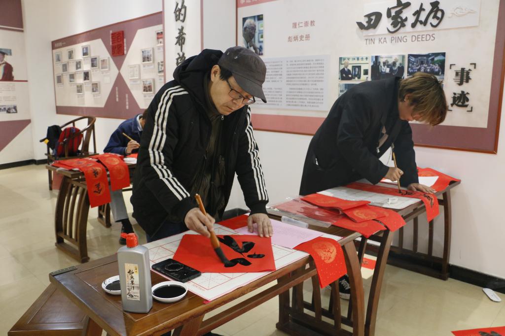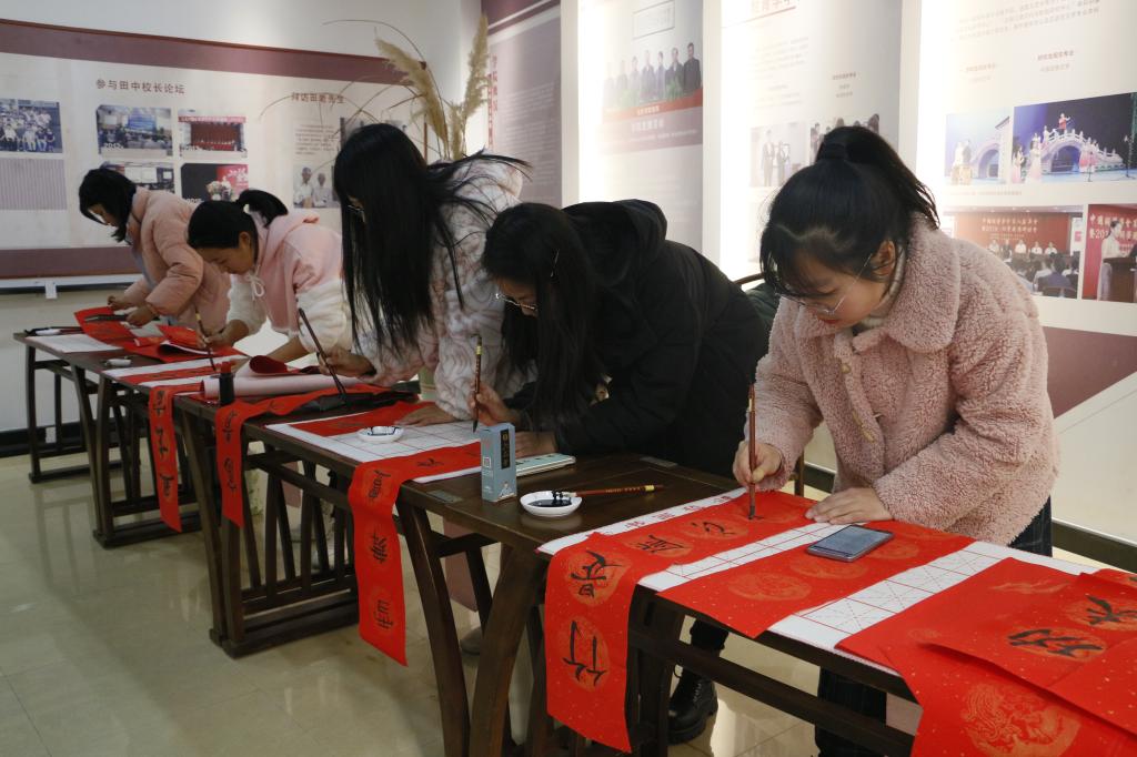 同学们现场写春联、写福字