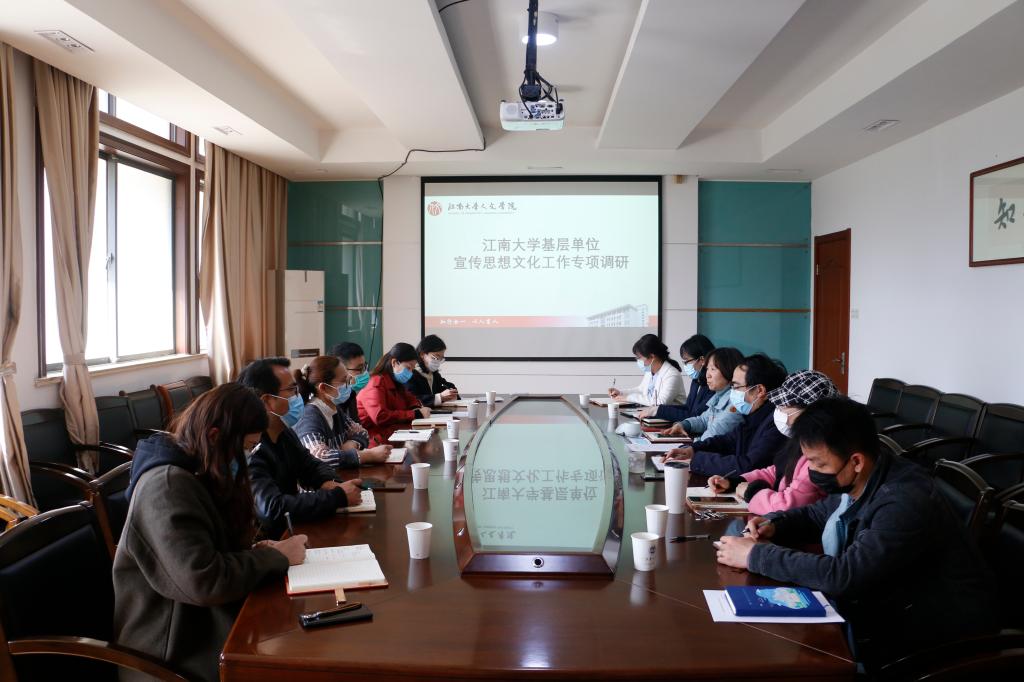 3月29日下午,校党委宣传部副部长陆敏芝、梁建一行赴人文学院调研宣传思想文化工作,人文学院党委书记姚剑英、院长杨晖、党委副书记兼副院长李萍、副院长王芳及相关负责老师参加了调研座谈会。