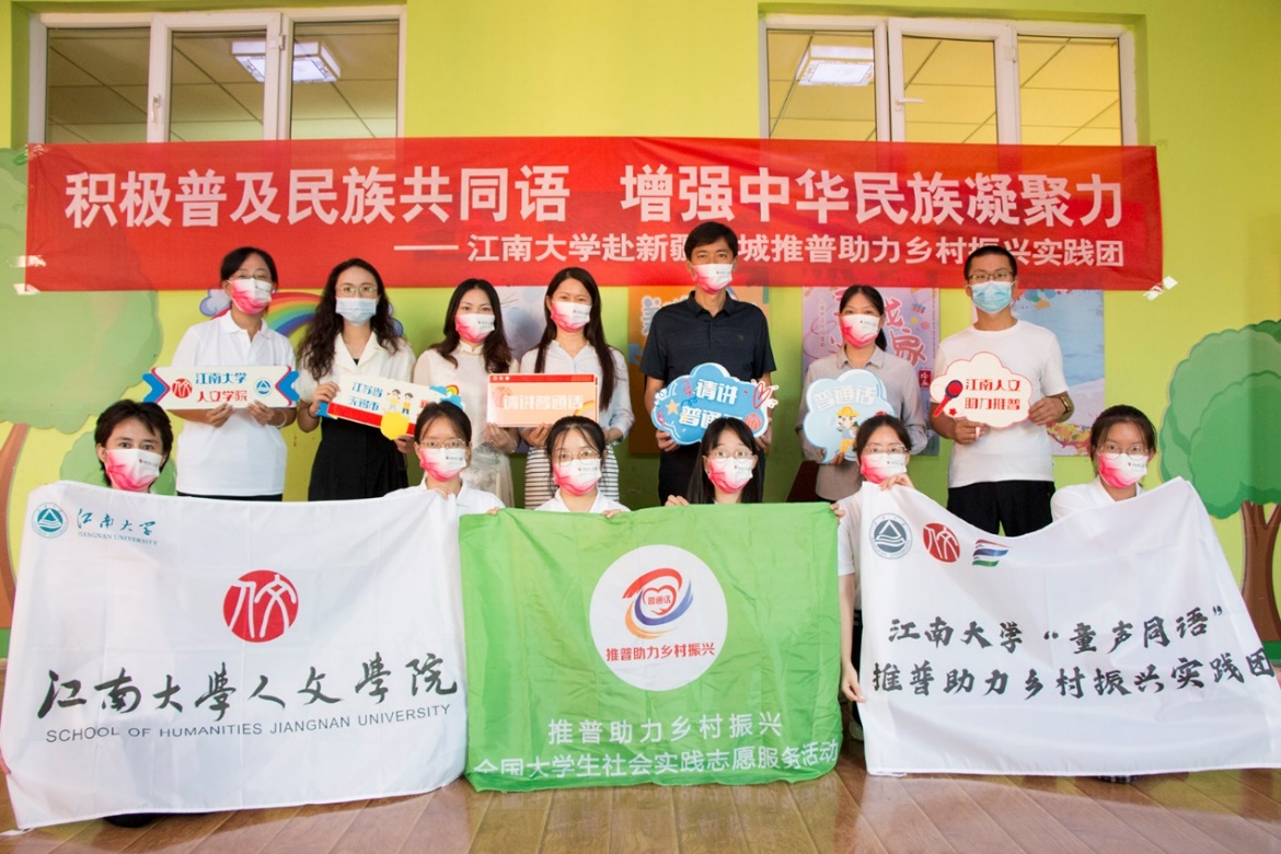 近日,江南大学人文学院“童声同语”推普实践团一行10人跨越四千四百公里的征途,奔赴新疆伊犁州霍城县开展为期5天的推普助力乡村振兴社会实践活动,此次活动由江阴教育局和江南大学人文学院共同组织,是江阴教育援疆的一个项目。团队成员先是在霍城县青少年活动中心汉字文化馆开营,结合当地民风民俗及语言文字使用情况,通过国学经典讲堂、规范字书写、民族故事史诗讲读、红色经典宣传教育、线上问卷调研等开展一系列语言文字推普活动,“云课堂”累计授课时长920分钟,师生互动110分钟,回收线上问卷2247份,覆盖来自11个不同职业领域,涵盖维吾尔族、哈萨克族、回族等18个民族的当地居民,营造了讲普推普良好氛围。