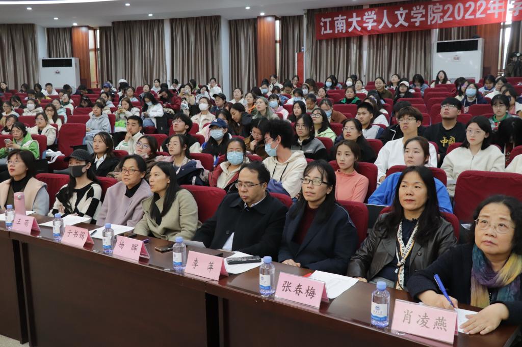 11月16日下午,人文学院在北区大学生活动中心音乐厅举行2022年学生年度人物评选答辩会。人文学院院长杨晖,党委副书记、副院长李萍,副院长于书娟,党委委员、院长助理张春梅,分团委书记赵丽敏以及学院各系老师及辅导员共同出席本次答辩会并担任评委。人文学院200余名学生代表在现场观看答辩会。