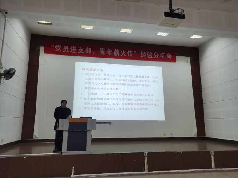 为引导学生科学规划未来,明晰升学形势、涵养职业发展潜力,近日,人文学院中文系升学就业动员会于一教1C109教室顺利召开。会议由中文系辅导员张雅静老师主持,邀请中文系系主任陈佳冀老师、汉语专业班主任韩宇瑄老师、汉师专业班主任王冰冰老师、教务管理李芳老师做交流分享,2020级中文系全体学生出席此次大会。