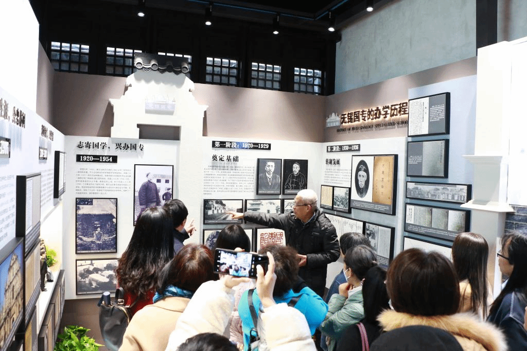 无锡国专是由著名教育家、国学大师唐文治于1920年创办的国学高等学校,致力于“保存中国传统文化的长久大计”,为国家培养了一大批杰出的国学精英与人才,形成了独特的办学模式和文化现象,留下了“北有清华国学院,南有无锡国专”的佳话。党员们跟随无锡国专研究专家、人文学院退休教师刘桂秋老师重温国专历史,再次感受无锡这一文化宝库的珍贵。漫步展馆,多幅珍贵的历史图片、文献著述与视频资料,向人们细细述说着唐文治先生的办学之路、治学方略,闪耀着中国近代教育之光。“纪念和传承无锡国专精神,有了标志性的载体”,参观结束后,党员老师们深入了解了无锡国专的办学宗旨“以救正人心,复兴中国文化,发扬民族精神为本”,深感作为教育工作者,更有责任纪念、研究、传承好无锡国专精神。